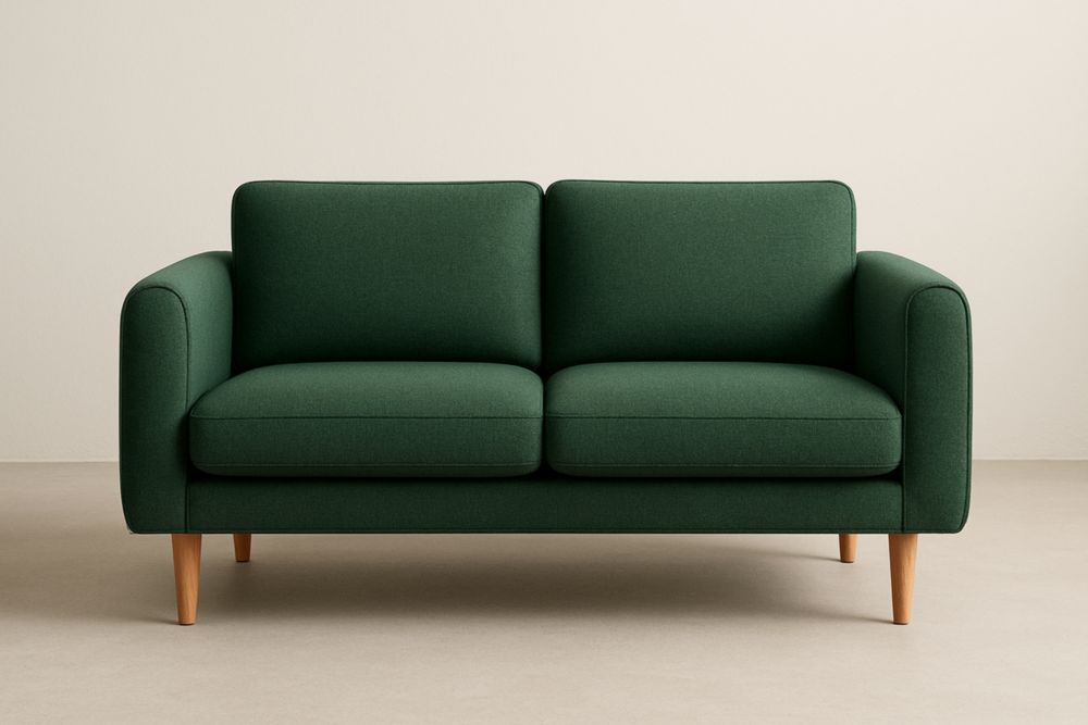 Divano Beige a Due Posti in Tessuto, con Cuscini