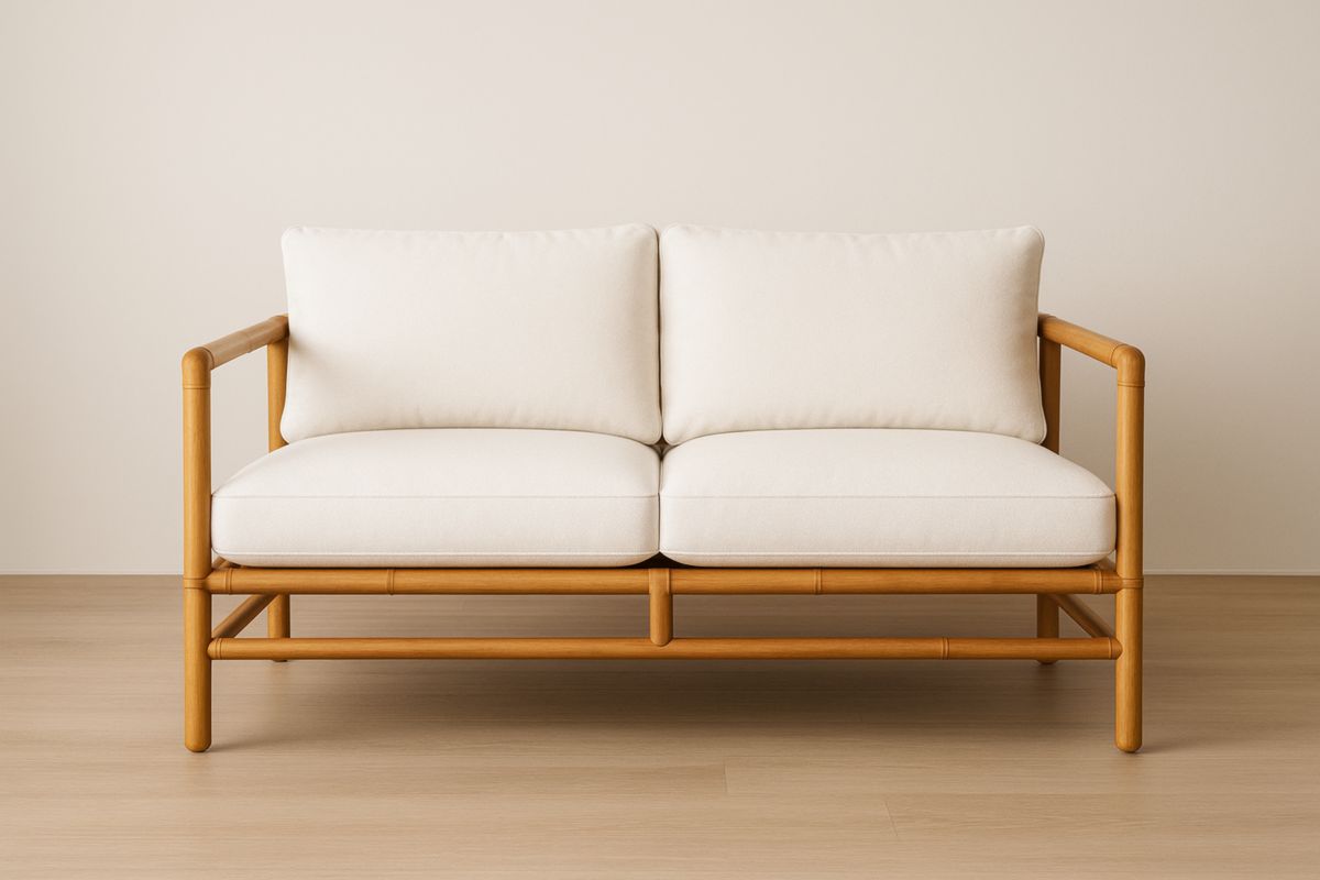 Divano due posti in bambù e tessuto bianco